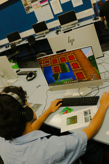 In a digital session led by Alex from Craffft NZ, students recreated their ancestral or home islands in Minecraft - starting by sourcing water, gathering natural materials, and building a fale. They mapped out their islands with food sources, waka landing sites, and landmarks rooted in Pacific ecology and knowledge.